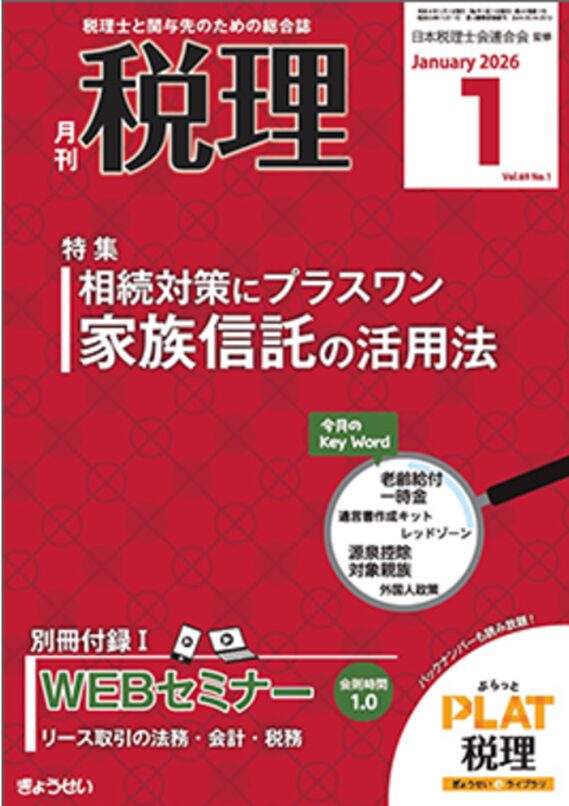 2025年12月19日に“ぎょうせい”という出版社から月刊税理2026年1月号が発売されました。